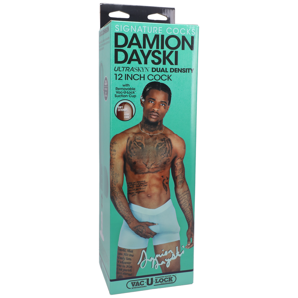 Damion Dayski vil have dig til at få alle 12 tommer ind! Hans 30 cm lange Signature Cock er støbt direkte fra hans krop i naturtro ULTRASKYN med dobbelt tæthed. Dette materiale indfanger perfekt alle detaljer, efterligner den unikke følelse af ægte hud og varmer op til kropstemperatur ved brug. Gør din pornostjerne-fantasi til virkelighed i aften!