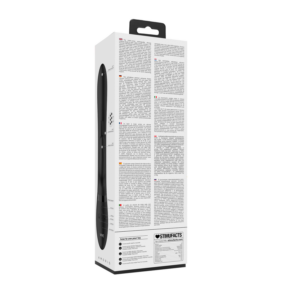 AMORIS er en pirrende op og ned, perlebesat kaninvibrator. Med et lodret, bevægeligt perleskaft med 10 funktioner, en vibrerende G-punktsspids med 10 funktioner og en dedikeret klitorisvibrator med 10 funktioner vil AMORIS tilfredsstille alle dine seksuelle behov. De 3 motorer giver dig over 1.000 mulige, unikke indstillinger at vælge imellem. Den er lavet af 100 % silkeblød silikone af medicinsk kvalitet, er 100 % vandtæt (ipx7) og ekstremt støjsvag med under 60 dB, hvilket betyder, at du kan bruge den, hvor end dit hjerte ønsker. Den indeholder et usb-magnetisk genopladeligt litium-ion-batteri, der, når det er fuldt opladet med usb-kablet, giver 55 minutters lidenskabelig spilletid. Bare sæt stikket i og oplad! Når du er tæt på klimaks, vil et enkelt tryk på klimaks-knappen med specialfunktion straks bringe alle motorerne op på fuld kraft/hastighed og, endnu vigtigere, bringe dig til en jordrystende orgasme.