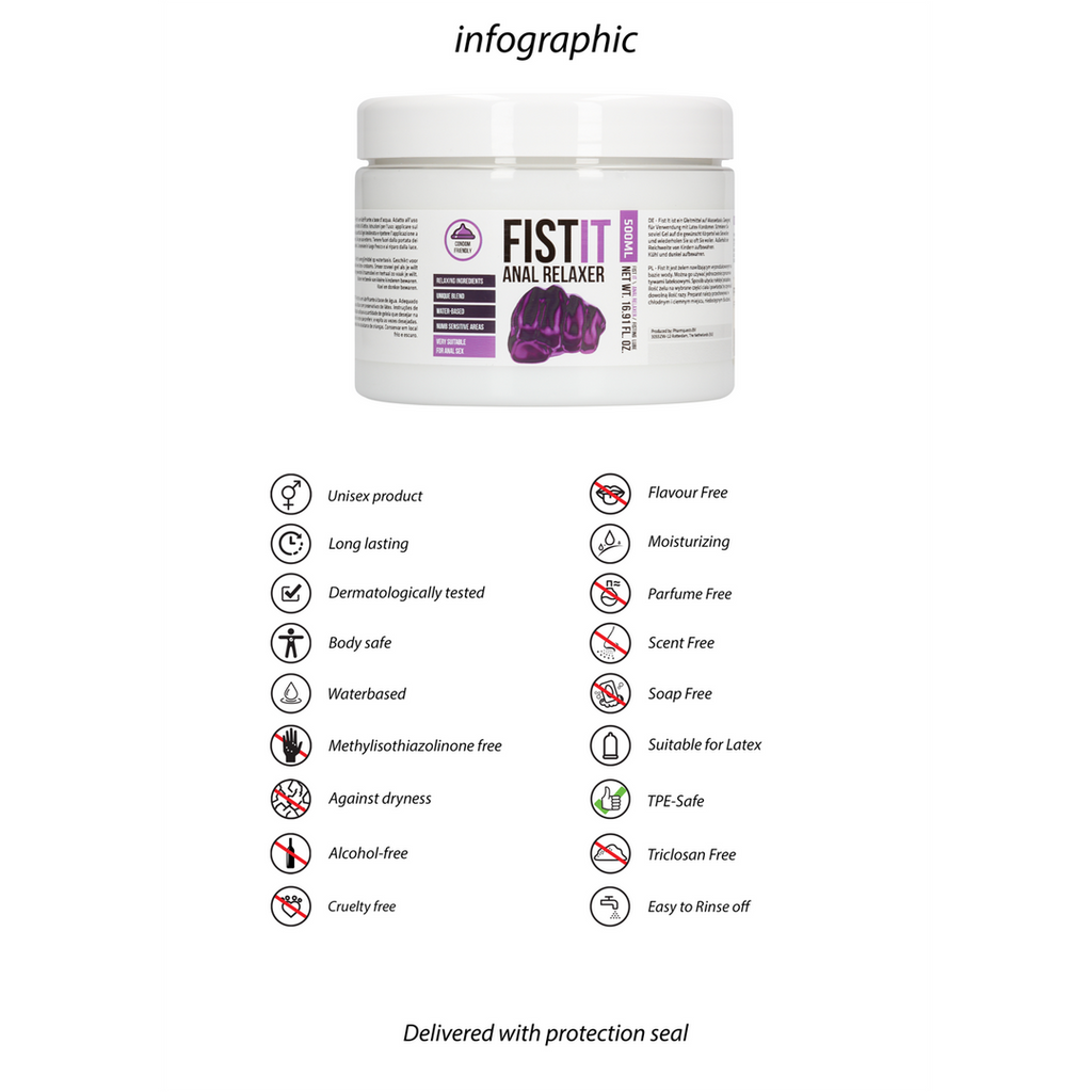 Fist It er en vandbaseret glidecreme. Velegnet til brug med latexkondomer. Brugsanvisning: Påfør så meget gel, som du ønsker, på den ønskede kropsdel, og gentag så ofte, du vil. Opbevares utilgængeligt for børn. Opbevares på et køligt, mørkt sted.