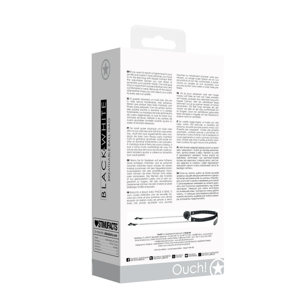 Hvis du vil nå et højere niveau i dit sexliv og gøre det mere ekstremt, er du nødt til at prøve denne Ball Gag med brystvorteklemmer! Med de justerbare klemmer kan du drille eller dominere din partner totalt. Ball gag-stroppen er lavet af læder og er meget behagelig at have på. På grund af de justerbare læderstropper kan du justere din krave til enhver størrelse, du foretrækker.