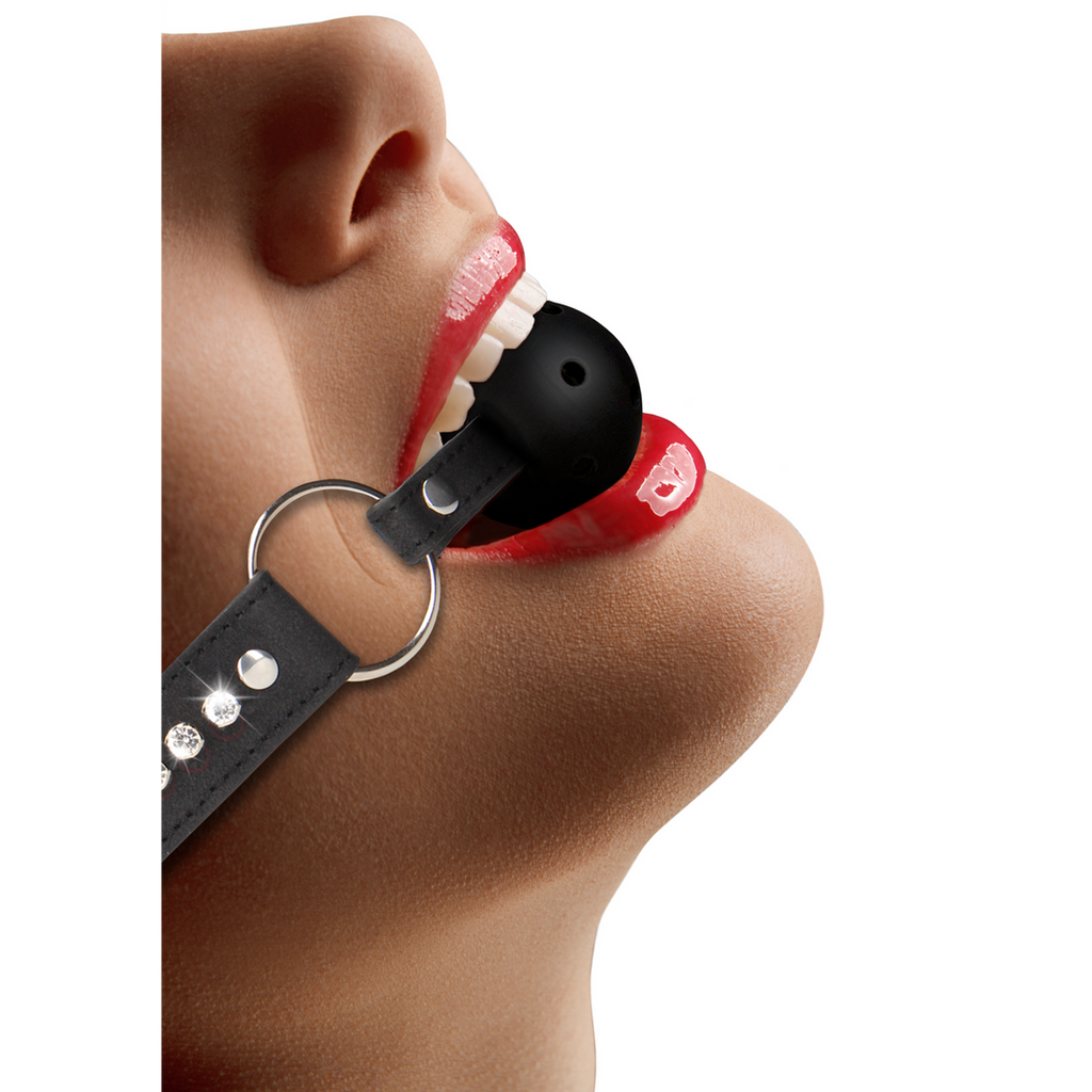 Åndbar Ball Gag med diamantbesatte stropper