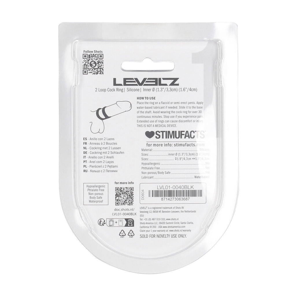 Dobbelt greb, dobbelt kontrol. Denne 2-loop-pikring fra LEVELZ-kollektionen er designet til at glide på skaftet, hvilket giver ekstra tryk og præcis placering. Uanset om du stabler dem for at få fornemmelse eller bruger den ene løkke som stabilisator, giver denne ikke-vibrerende ring ekstra intensitet. Fremstillet af kropssikker silikone og pakket i en elegant muslingeskal til ubesværet udstilling.