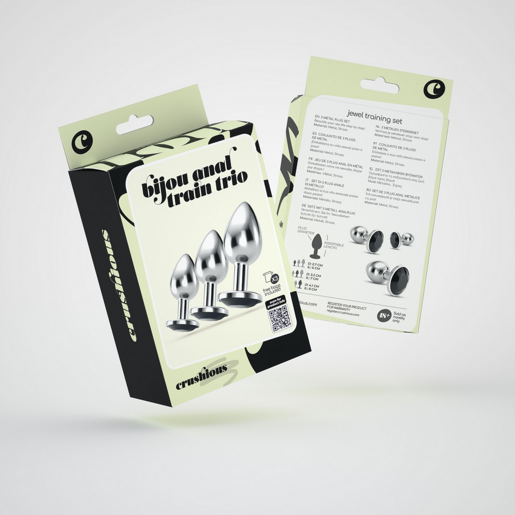 Forkæl dig selv på den mest luksuriøse måde! Crushious præsenterer den mest eftertragtede og elegante kollektion af analsmykker. Bijou giver dig sofistikerede analplugs, præsenteret i et sæt med 3 forskellige størrelser for gradvist at øge din modstand.Bijou kan bruges som pynt i en strip tease-session og som ekstra stimulering under vaginal penetration.Metallet er perfekt til temperaturleg, nedsænk din plug i varmt eller koldt vand for nye og spændende oplevelser!Brug med glidecreme for bedre indføring. Vælg Crushious Waterbased eller Anal lubes for endnu bedre resultater.Vask med varmt vand og mild sæbe efter brug, du kan også bruge et legetøjsspecifikt antibakterielt rengøringsmiddel.Perfekt til at træne din anale modstand.Dimensioner:S - Indføringslængde: 6 cmDiameter: 2,7 cm.M - Indføringslængde: 7 cmDiameter: 3,3 cm.L - Indføringslængde: 8 cmDiameter: 4,1 cm.