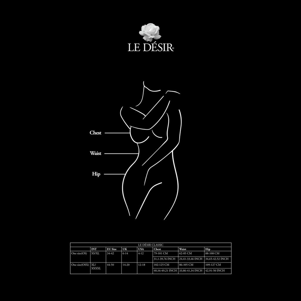 Suspender bodystocking med en kombination af fiskenet og hegnet net for at give den mere kontrast. Nøglehul i toppen. Denne bodystocking har meget stretch og kan bruges fra størrelse XXL til 5XL.