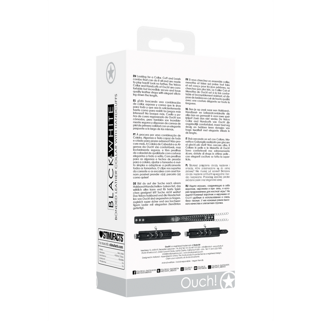 Leder du efter en kombination af halsbånd, manchetter og snor, der kan det hele og er lavet til at spille hårdt? Så behøver du ikke lede længere. Læderhalsbåndet og håndjernene fra Ouch! er behagelige, men utroligt sikre og har kvalitetslæderstropper med elegante syninger i hele længden. Med stropper til håndjernene og trykknapper til halsbåndet er det nemt at justere størrelsen, og det passer til næsten alle størrelser. Kædeholderne med clips og D-ring-stik gør det muligt at begrænse din elsker, som du vil!