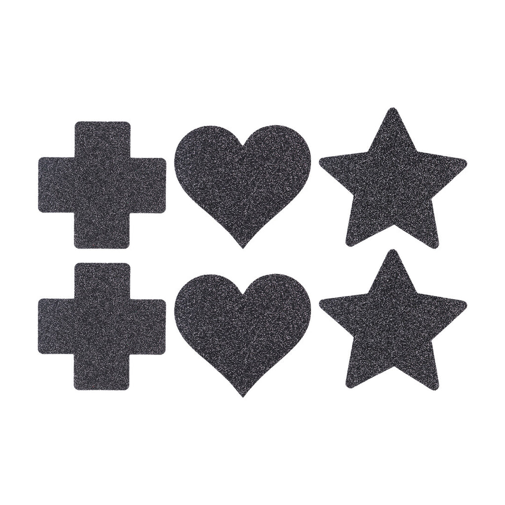 Brystvorteovertrækssæt - kors stjerne hjerte - sort