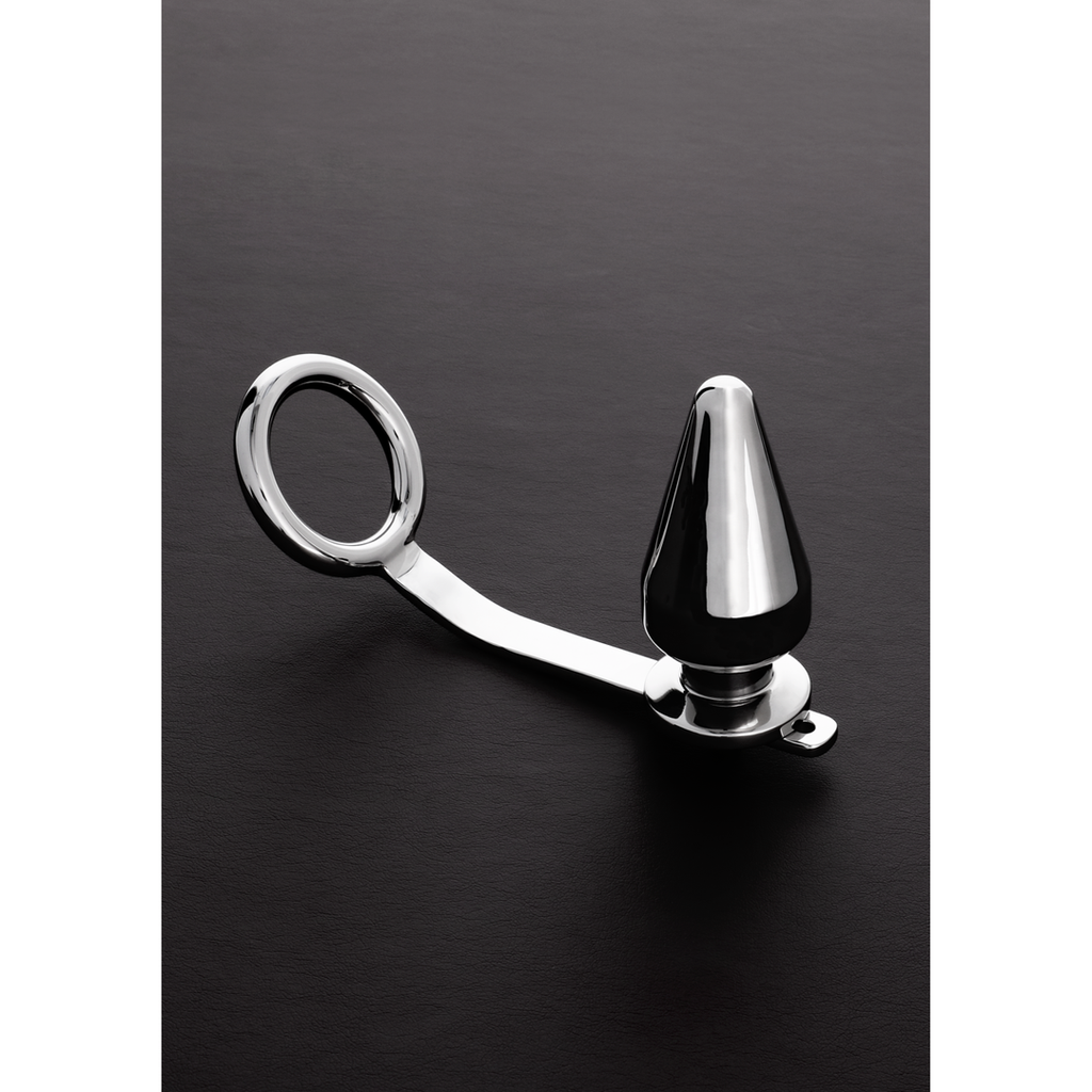 Mærk den dobbelte nydelse, når du bærer denne unikt designede kombination af buttplug og pikring. Denne pikring i rustfrit stål har en lang arm, der buer rundt over mellemkødet for at forbinde ringen med en buttplug. Som med alle andre anallåsekombinationer giver Pikes Peak dig mulighed for at bære en buttplug længere og mere sikkert, fordi pikringen og forbindelsesarmen holder den på plads, selv når du bevæger dig eller går rundt. Pluggens glatte, tilspidsede spids glider forsigtigt ind med bare lidt af din yndlingssmøremiddel. Den er justerbar og har tre huller for enden af forbindelsesarmen, så buttpluggen kan skrues af og sættes på plads i den perfekte position for optimal komfort.