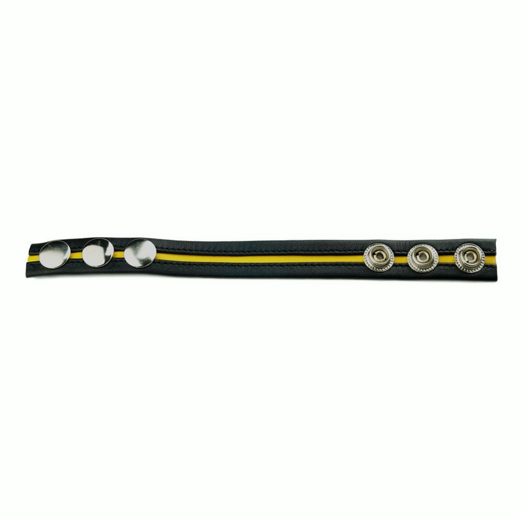 Den nye herretøjs- og tilbehørsserie fra Prowler Red kommer til at få en del opmærksomhed. Cock Strap er designet til at komplimentere de andre ting i denne læderserie. Denne fint forarbejdede læderstrop med tre trykknapper sikrer en god pasform med mulighed for at stramme til, hvis det ønskes. Vælg mellem helt sort, sort med gul stribe eller sort med rød stribe.Længde - 21,5 cmBredde - 2 cm
