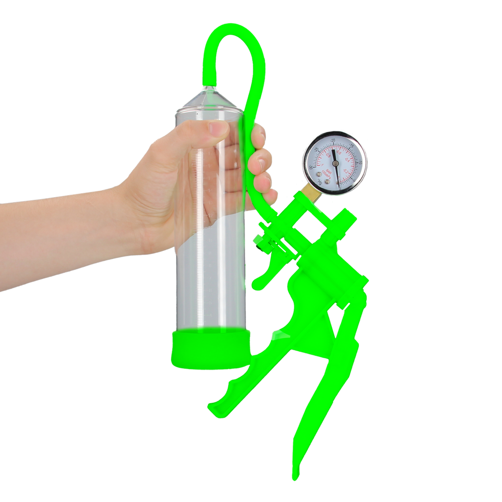 Av! Glow in the Dark, fremtiden for bondage er her. Designet med en autentisk bondage-æstetik, men med den ekstra glæde ved de selvlysende egenskaber, vil de fluorescerende grønne detaljer gøre enhver begivenhed til en fest. Med Ouch! Glow in the Dark er det sjove kun lige begyndt, når lyset slukkes. Det er tid til at pumpe den op med denne penispumpe med pistolgreb! Den kraftige pistol giver dig det ønskede hårdhedsniveau på kort tid. Designet er ergonomisk og behageligt og giver dig de rigtige effekter. Av!Glow-In-The-Dark-produkter skal aktiveres med sollys, før du kan nyde dem i mørket.