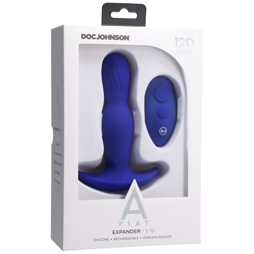 A-Play EXPANDER er en førsteklasses analplug, der både kan vibrere og udvide sig, mens den er inde i dig. Den styres nemt direkte på produktet eller via den medfølgende trådløse fjernbetjening. A-Play er Doc Johnsons high-end serie af performance analplugs, skabt med en række forskellige størrelser og specielle funktioner til at fremme anal nydelse og udforskning for brugere på alle erfaringsniveauer. Hvert produkt i A-Play-kollektionen er USB-opladeligt, vandafvisende og inkluderer et opladningskabel og en opbevaringspose i stof.