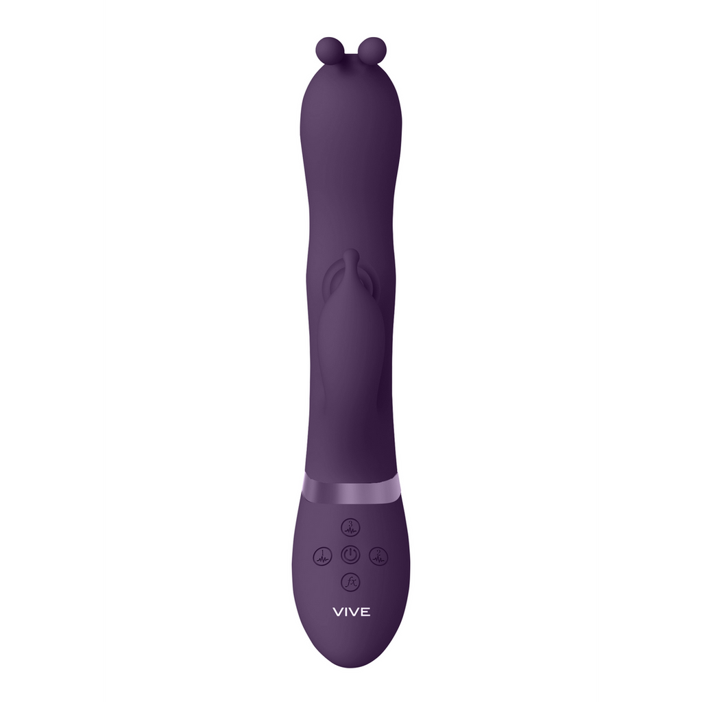 VIVE048 Det er en af de mest innovative og kraftfulde vibratorer på markedet i dag takket være dens tre 10-funktioners nye generation af F1-motorer og dens avancerede teknologier (alle tre motorer kan styres uafhængigt). Med sin unikke G-punktsstimulerende funktion med kaninøre, et førsteklasses pulsbølge-skaft og en vibrerende klitorisfunktion vil denne vibrator udrette mirakler. Og med 3 motorer og 10 indstillinger hver har du mulighed for 1.000 forskellige indstillinger. Den er fremstillet af silkeblød silikone af medicinsk kvalitet (allergivenlig), er helt vandtæt (IPX7) og ekstremt støjsvag med under 60 dB. Det betyder, at du kan bruge den, hvor du vil! Den indeholder et USB-magnetisk genopladeligt litium-ion-batteri. Når den er fuldt opladet med sit USB-kabel, giver den 50 minutters lidenskabelig spilletid. Bare sæt stikket i, oplad, og leg! Når du er tæt på klimaks, vil et enkelt tryk på den særlige klimaks-knap straks bringe alle motorerne op på fuld kraft/hastighed og, endnu vigtigere, bringe dig til en jordrystende orgasme. Alle VIVE-vibratorer har 1 års garanti for at beskytte din investering.