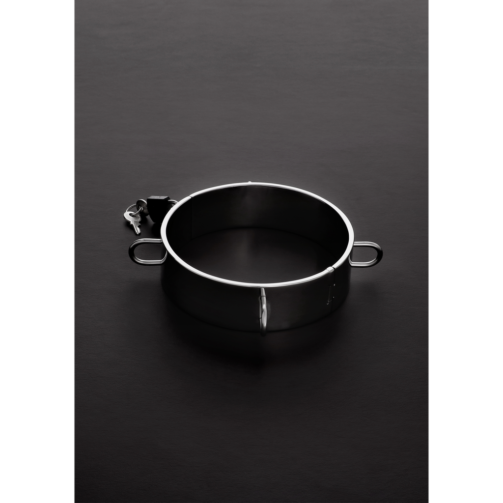 Dette tunge slavehalsbånd er lavet af rustfrit stål og i en fantastisk kvalitet. Halsbåndet har 4 D-ringe i stål, som giver dig utallige bondage-muligheder.