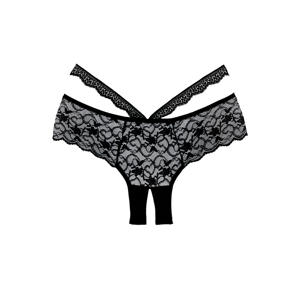 En hvirvelvind af skulpterede blonder dækker dine hofter og bagdel i denne overdådige trusse med åben kile og drengesnit, med høje blondestropper, der fejer op i en vinkel for at skabe en timeglas-effekt.