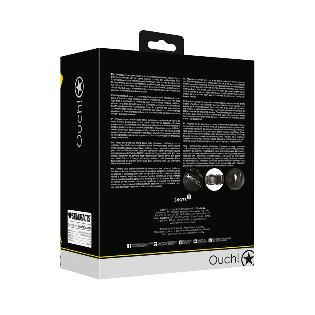 Gør dig klar til at holde din sub's mund lukket med denne lædersele til hovedet. Lyn munden godt til med lynlåsen, lås den fast med en lås, så der ikke er plads til ulydighed. Selen er lavet af højkvalitetslæder og metalspænder og passer perfekt til dig. Dyk ned i den elektrificerende verden af BDSM, hvor magtdynamikken hersker. Så tag denne hovedsele på, fastgør metalspænderne, og gør dig klar til at lukke munden på din undersåt, mens du udforsker de spændende eventyr, der venter dig. Slip din dominans løs, og giv dine lyster til kende.
