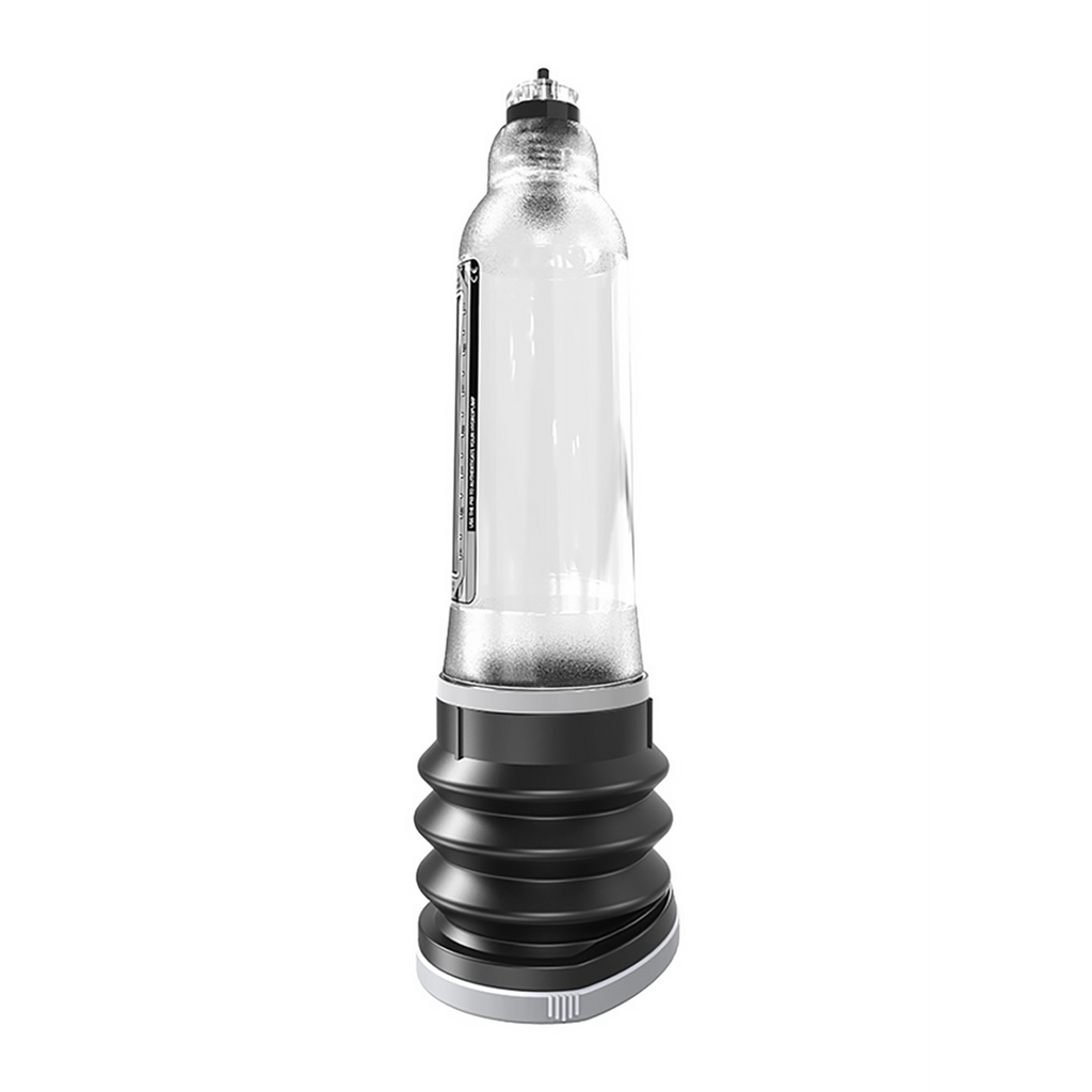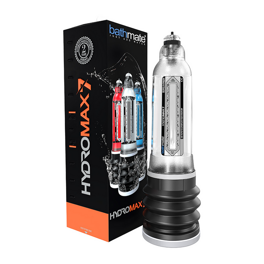 Hydromax7 er det ultimative inden for hydroteknologi til udvikling og sundhed af penis. Den gør alt, hvad Bathmate Hydro7 gør, og mere til. Hydromax 7 genererer 35 % mere sugekraft end Bathmate takket være det unikke, nydesignede Bellows-pumpesystem, som giver dig bedre og hurtigere resultater. Bellows-systemet indeholder nu en ny, blød komfortring med fuld støtte, som giver dig reduceret tryk og større komfort omkring penisbasis og testikelområdet. Som en ekstra bonus kan den også tages af, så den er nem at rengøre. En ny Swivel Bellows-funktion giver mulighed for 360 graders positiv rotation, så du kan se hele kammeret, plus mulighed for at ændre den skrå vinkel for optimal effektivitet, når den bruges i badet eller under bruseren - eller når du bruger det fantastiske nye Hydromax fornøjelsesringssystem.Et nyt Super Flow Latch Valve-system giver mulighed for påfyldning med én hånd under bruseren, hvilket gør det meget nemmere for dig at bruge og placere hydropumpen.en ny metrisk og imperial vejledende skala giver dig et forbedret visuelt synsområde, plus øvre og nedre teksturering på vakuumrøret for bedre greb og kontrol.den indvendige bælgstørrelse er blevet øget og antallet af vindinger reduceret, så du kan få en endnu mere imponerende omkredsudvidelse.