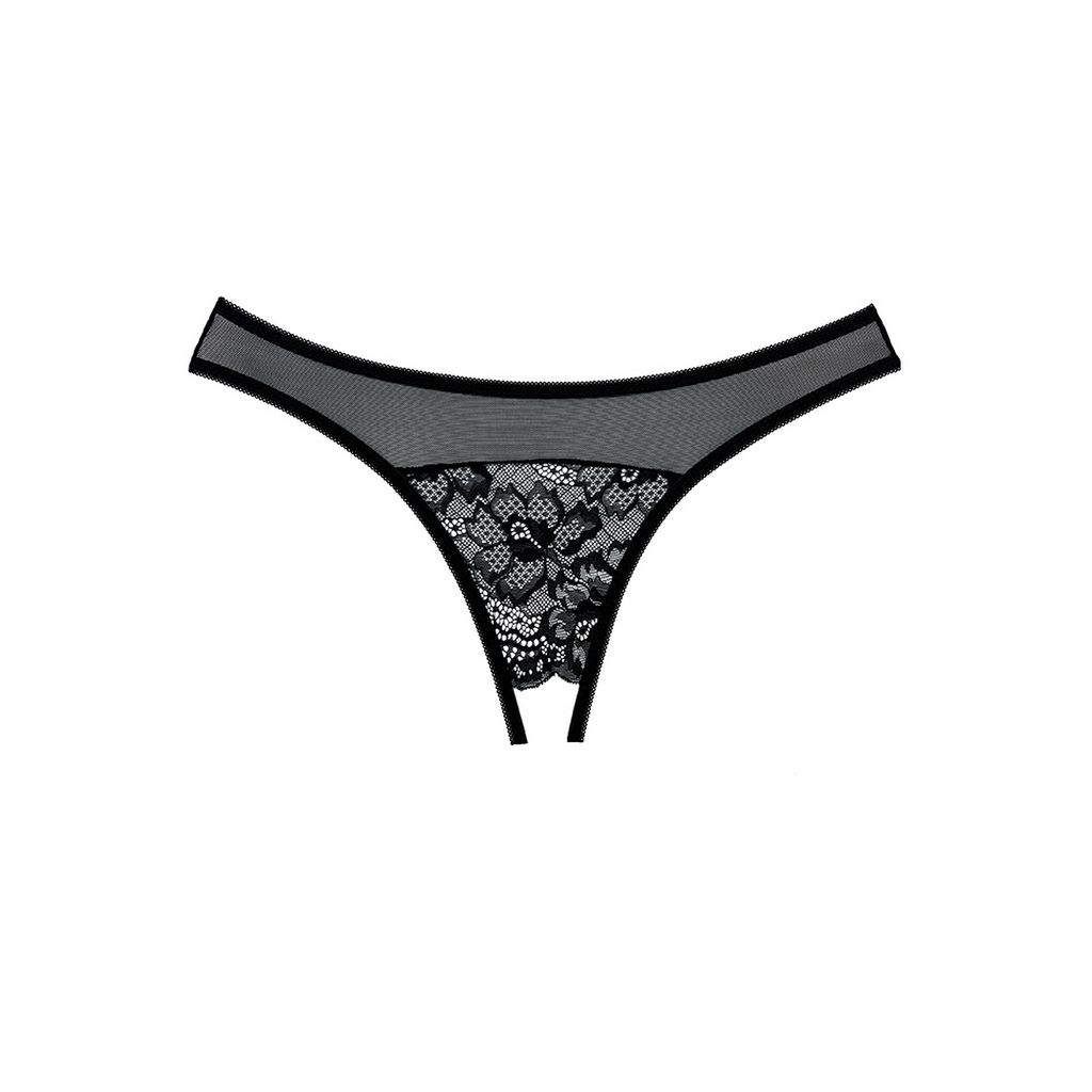 Fantasien følger, hvor rygterne går i denne syndigt erotiske skridtløse trusse med en snedig åben ryg. Delikate blonder kysser både foran og bagpå og toppes hele vejen rundt af et bånd af gennemsigtigt mesh.