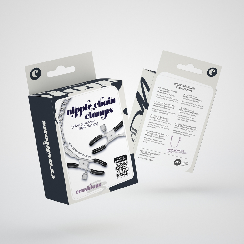 Brystvorte-leg vil øge din nydelse uden smerte og bringe din mest legesyge side frem! Hovedegenskaber:- Forbindelseskæde- Justeres med et enkelt drej på skruen- Gummierede spidser for komfort- Træk i kæden for ekstra kuldegysninger- Alt sammen brugervenligt- Materiale: Metal, gummi
