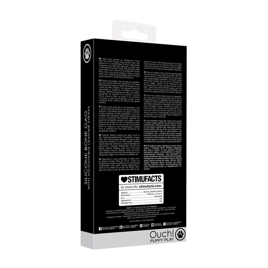 Send din partner på lydighedsskole med Ouch! Puppy Play-produktlinjen. Nyd rollespillet med stil, og sørg for at lære din hvalp en masse nye tricks. Giv din gode hvalp et kødben, eller hold den fra at klynke og gø med Bone gag, der er lavet af medicinsk silikone.