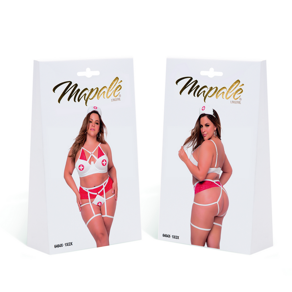 Forkæl din partner med dette sexede sygeplejerskekostume. Indeholder top med bøjle, blondeg-streng med strømpebånd og åben ryg samt hovedstykke.