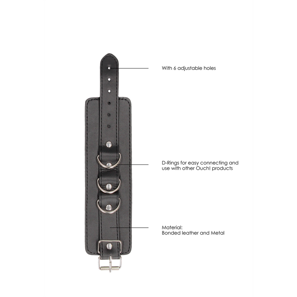 Leder du efter en manchet, der kan det hele, og som er lavet til at spille hårdt? Så behøver du ikke lede længere. Manchetterne fra Ouch! har kvalitetslæderstropper med elegante syninger i stroppernes længde, de er komfortable, men utroligt sikre. Stropperne har 6 huller til at justere længden med metalbeslag og D-ring-stik til at forbinde dem. Brug dette legetøj alene eller i kombination med andre produkter fra Ouch!