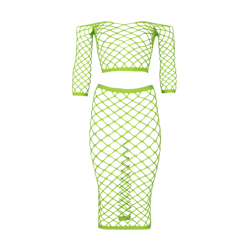 Langærmet Crop Top og lang nederdel - One Size - Neon Green