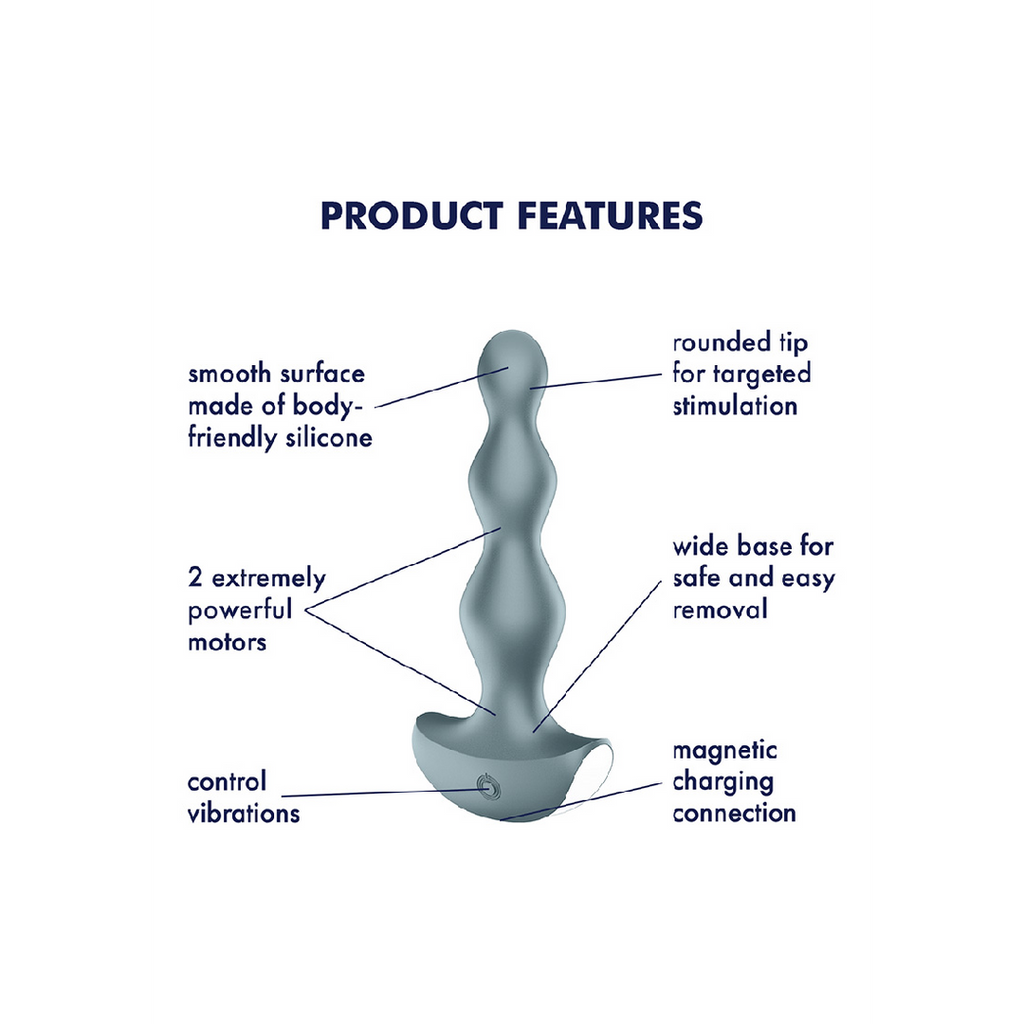 Tid til at blive glad med LOLLI-kollektionen! LOLLI PLUG 1, udstyret med 3 opadgående diamantformede perler, og LOLLI PLUG 2, med 3 opadgående afrundede perler, fylder, kærtegner og presser begge perfekt alle dine anale nydelsespunkter. Disse sensuelle plugs er velegnede til begyndere og mere avancerede spillere og har to stærke og strategisk placerede motorer og er lavet af blød, kropsvenlig silikone. De pirrende vibrationer i perlerne giver en unik rullende vibration, som vil pirre og forføre dig til øgede tilstande af lyksalighed. LOLLI PLUG 1 fås i to unikke farver: dark teal og berry. LOLLI PLUG 2 fås i to indbydende farver: kølig grå og varm grøn. Bestil din i dag, og gør dig klar til at møde din næste nydelsesalliance.