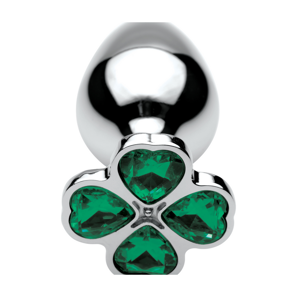 Lad din røv være heldig med denne mellemstore analplug i metal med et kløversmykkedesign i bunden! Sæt denne lykkeamulet i din pot-o-gold og nyd den behagelige vægt inde i din krop takket være det nikkelfri materiale af aluminiumslegering. Den er fantastisk til temperaturleg, og du kan varme eller køle den i vand, før du fører den ind. Basens attraktive form vil overraske din partner, når du bøjer dig forover. Ryst den kløver! Brug den med en glidecreme efter eget valg, og rengør den efter brug med mild sæbe eller legetøjsrens.