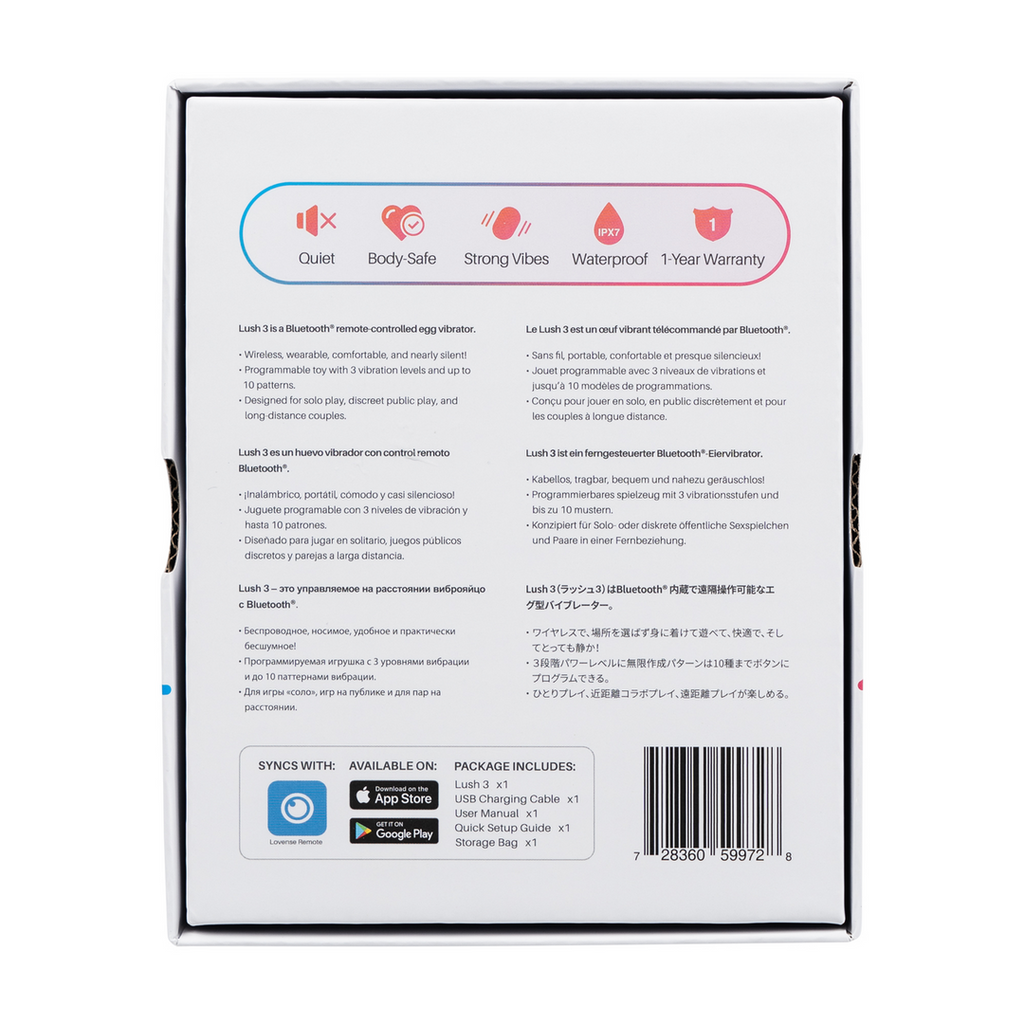 Den app-styrede Lush 3-vibrator revolutionerer den intime leg og tilbyder brugertilpassede vibrationer og langdistanceleg for par. Dens ergonomiske design giver intens G-punktsnydelse med rumlende vibrationer. Dens diskrete, bærbare design sikrer, at du kan nyde nydelse på farten, mens den støjsvage motor gør den ideel til offentlig brug. Blød silikone og IPX7-vandtæthed øger komforten og bekvemmeligheden. Privatlivsemballage medfølger.