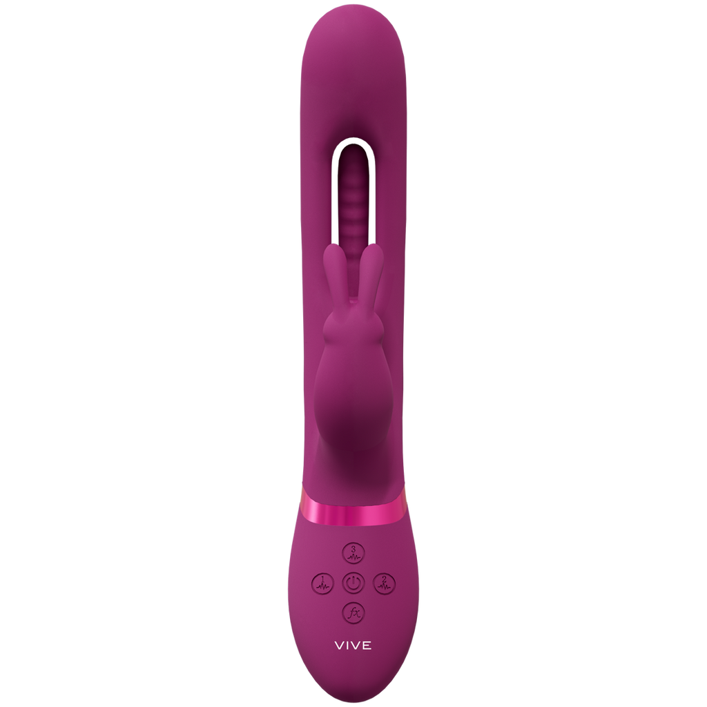Det unikke design af VIVE057 MIKA Flapping Tongue Rabbit-vibratoren gør, at den skiller sig helt ud fra andre enheder. Tre uafhængigt styrede New Generation F1 10-hastigheds-/funktionsmotorer driver denne smukt designede vibrator. Der er en klappende tunge G-punkts-motorfunktion, en vibrationsspids og en ydre klitoris Rabbit-funktion. Med over 1000 forskellige kombinationer vil dette legetøj bringe dig til steder, du aldrig havde drømt om. Når du er tæt på klimaks, vil et enkelt tryk på den særlige klimaks-knap straks bringe alle motorerne op på fuld styrke/hastighed. Den fuldt USB-magnetiske genopladelige silikonevibrator af medicinsk kvalitet har en batterilevetid på 60 minutter og er helt vandtæt (IPX6), hvilket betyder, at du kan nyde dette legetøj, hvor som helst du vil. Alle VIVE-vibratorer leveres med 1 års garanti.