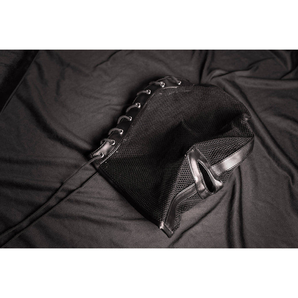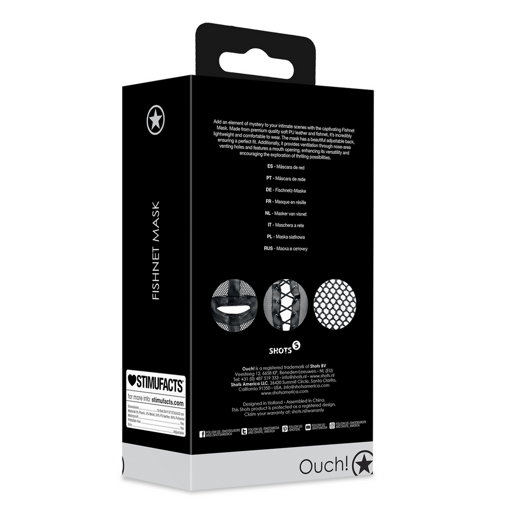 Tilføj et element af mystik til dine intime scener med den fængslende fiskenetmaske. Den er fremstillet af blødt PU-læder og fiskenet af høj kvalitet og er utrolig let og behagelig at have på. Masken har en smuk justerbar ryg, der sikrer en perfekt pasform. Derudover giver den ventilation gennem udluftningshuller i næseområdet og har en mundåbning, hvilket forbedrer dens alsidighed og tilskynder til udforskning af spændende muligheder.