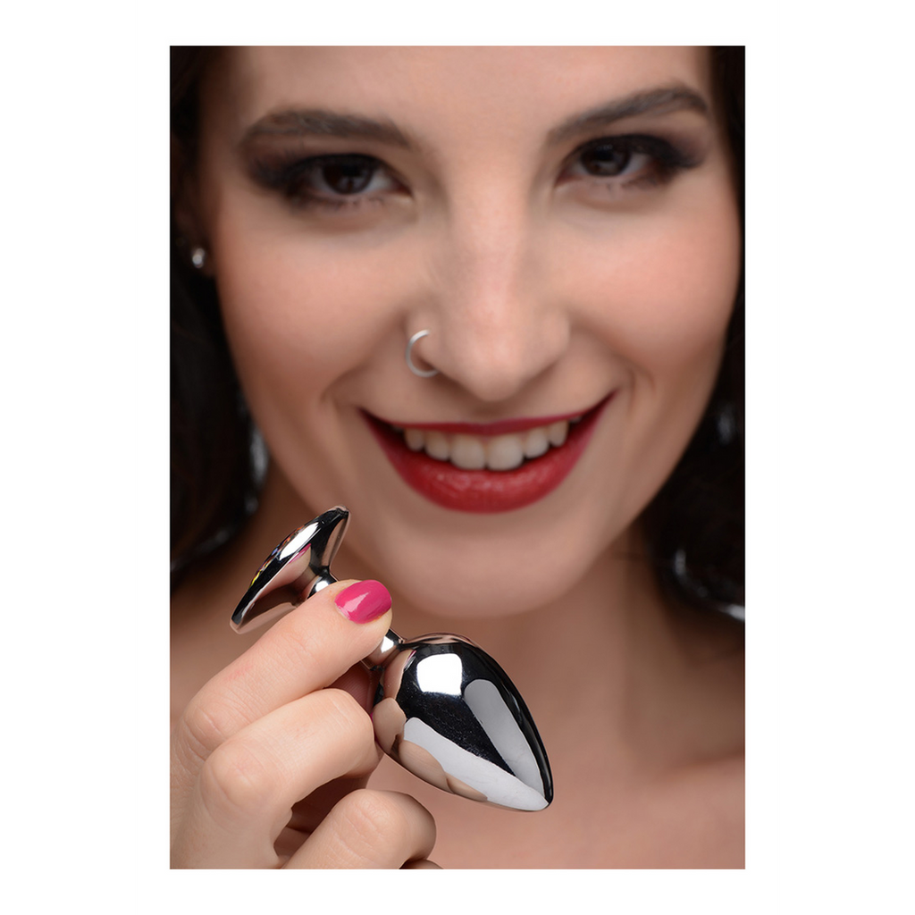 Smyk din bagdel med denne Rainbow Prism Gem buttplug! Regnbueperlen tilføjer blændende lystfuld energi til din bagdel, mens den lille størrelse og tilfredsstillende vægt kvalificerer denne strålende buttplug som aftenens hovedbegivenhed eller som en mild opvarmning for dem, der er mere erfarne med analleg.lavet af nikkelfri aluminiumslegering for en superglat, ikke-porøs, kropssikker oplevelse! Kompatibel med vand- og silikonebaserede glidecremer, så du kan bruge enhver form for glidecreme til en behagelig analsession. Den tilfredsstillende vægt og tæthed vil helt sikkert behage analspillere af enhver art. Fremragende til temperaturleg - varm den op eller køl den ned for at få en række forskellige fornemmelser i bagdøren! Rengør før og efter brug med varmt vand og mild antibakteriel sæbe eller legetøjsrens. Indsæt og blænd din elsker med denne sensuelle perle, og sæt gang i deres motorer!