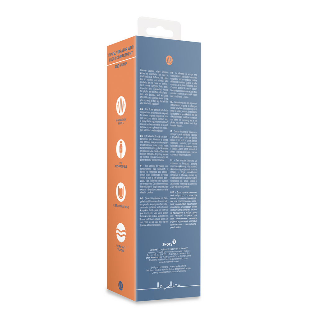 Denne rejsevibrator med 13 ml rum til glidecreme og pumpe er designet til at give målrettet nydelse på forskellige måder, og med sin kompakte størrelse passer den nemt i enhver taske eller kuffert! Oplev endeløse øjeblikke af glæde og overraskelse, når du udforsker det sjove ved nydelse med denne Loveline-vibrator.