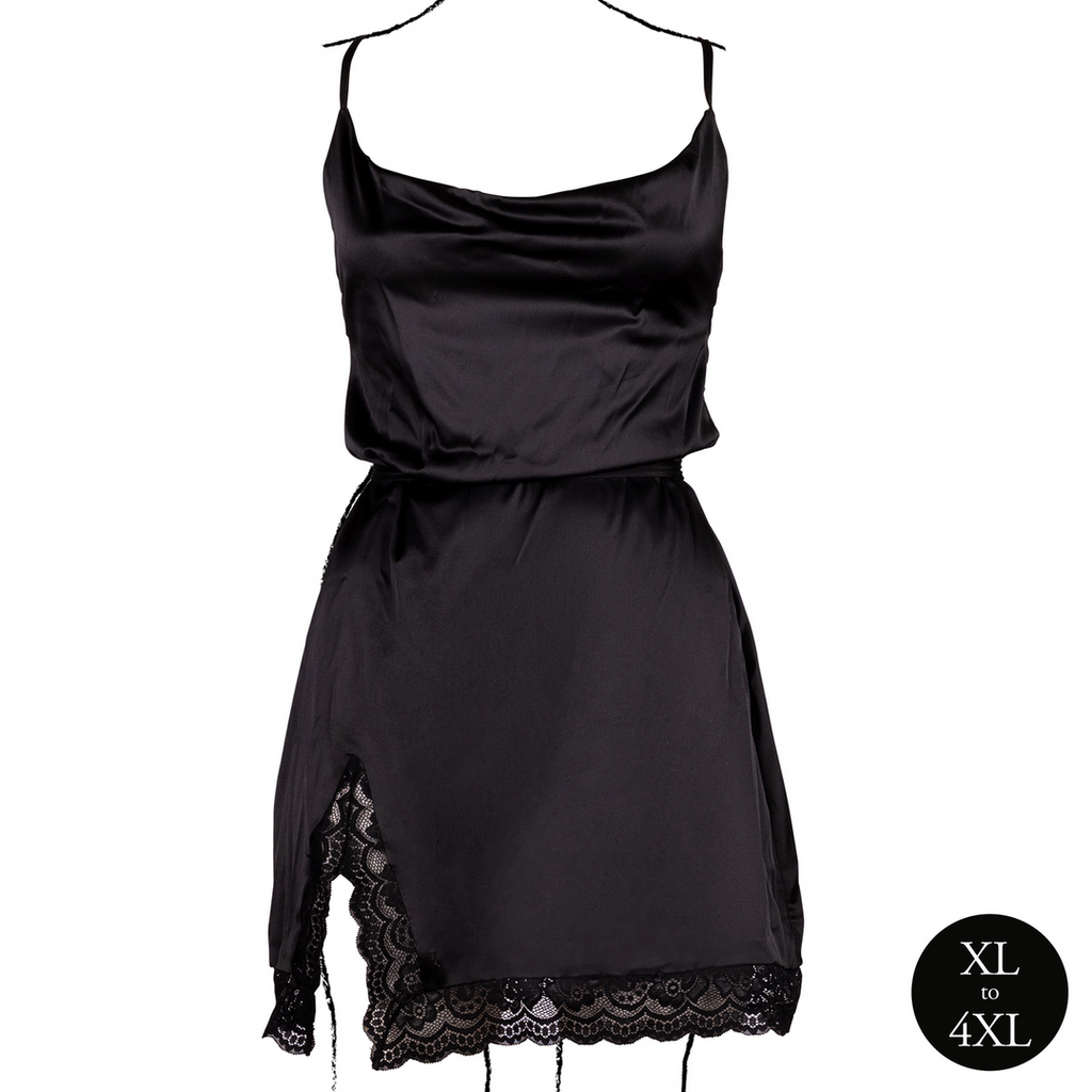 Træd ind i rampelyset med vores fængslende sorte kjole, der lader den klassiske "Little Black Dress" langt bag sig. Denne fantastiske kjole har krydsede stropper bagpå, som giver din silhuet et vovet twist. Den sexede længde fremhæver dine kurver, mens udsøgte blondedetaljer skaber en romantisk og flirtende stemning. Denne kjole er designet til at vække opsigt og er det ultimative blikfang til enhver lejlighed, uanset om det er en aften i byen eller en intim middag. Omfavn din modige side, og lad denne fortryllende kjole give dig mulighed for at udtrykke din unikke stil og selvtillid. Med hvert skridt vil du udstråle charme og raffinement og skabe uforglemmelige minder, som helt sikkert vil vække lidenskab og beundring. Fås i størrelserne XL til 4XL.