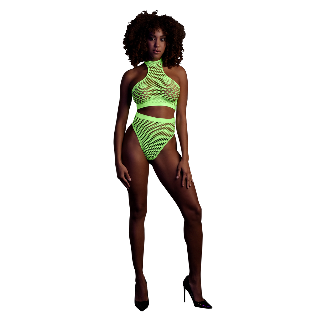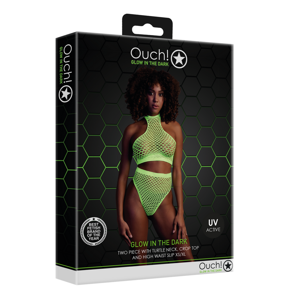 Vores Neon-undertøj er den perfekte tilføjelse til din kollektion. De er lavet af behagelige, elastiske materialer, der er nemme at passe, og de er designet til at passe perfekt til din krop. Uanset om du bruger dem som festtøj eller lingeri, vil dette iøjnefaldende stykke sørge for, at du skiller dig ud! Slip din indre gudinde løs med dette fantastiske UV-aktiverede lingeri. Det består af en crop top med rullekrave og en trusse med høj talje. Et fantastisk festtøj, der giver dig wow-faktor og får dig til at skille dig ud. De UV-aktiverede materialer giver et strejf af mystik og tiltrækningskraft. Let at passe på grund af de strækbare materialer, der får dig til at lyse op i natten. Fås i neonpink og neongrøn. Størrelserne går fra XS/XL til XL/XXXXL