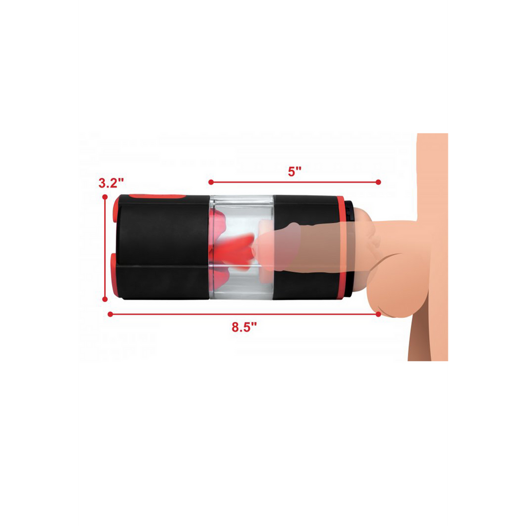 Denne vibrerende onanistroker går ud over fantasien og giver dig mulighed for at trænge ind i en vagina og mærke en tunge indeni! Forkæl din penis med 3 hastigheder og 4 funktioner af vibrationer fra vulvaen og flimren fra tungen. Du skal bare smøre dig ind og glide lige ind! Du kan endda tage tungedelen af for at bruge den separat på andre dele af kroppen. Vulvaen er lavet af et blødt materiale, der føles ultra-realistisk, med teksturdetaljer indeni. Silikontungen er fast, men fleksibel. Oplev vaginal og oralsex på samme tid med denne innovative mandlige masturbator! Brug kun vandbaserede glidecremer, og rengør med mild sæbe eller legetøjsrens for at bevare materialerne. Der medfølger en hætte til nem opbevaring.