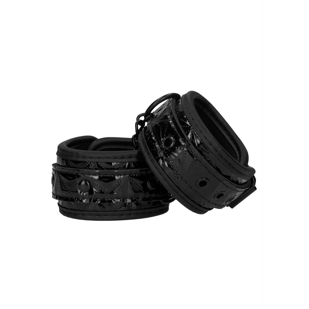 Spred lidt kærlighed og din elskers lemmer for at få uhindret adgang til de mest intime områder under erotisk leg! Denne robuste metalsprederstang kombineres med 2 fastgjorte ankelmanchetter til fuld eksponering og fræk sjov. De sorte manchetter er lavet af behageligt neopren og lakeret vinyl med et trendy diamantmønster. OUCH! metalspredejernet måler 40,3 cm i længden med en diameter på 1,5 cm. Ankelmanchetterne er 39 cm (15,4") lange og 5,5 cm (2,2") brede med et spænde og tilstrækkeligt med huller til den rigtige størrelse.