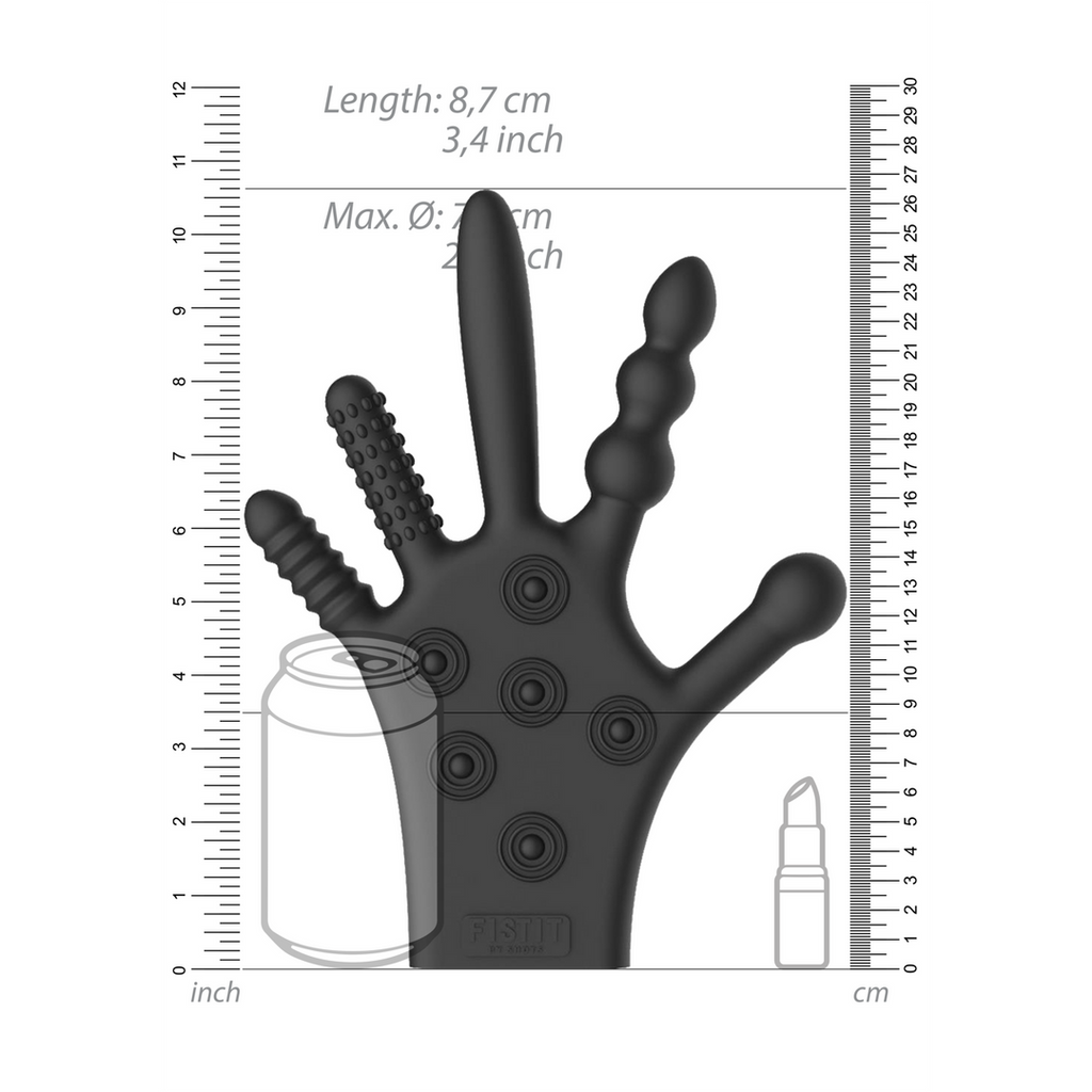 Forvandl hver eneste af dine fingre til et spændende sexlegetøj med. FISTIT-stimuleringshandsken giver dig overtaget i soveværelset. Med forskellig tekstur på hver finger giver dette ultraelastiske legetøj unik vaginal og anal stimulation! Tommelfingeren har en stor rund top, der kan bruges til prostata- eller vaginalstimulering. Pegefingeren har en spids top og 3 buler, som du kan bruge, som du vil. Langfingeren er en ligefrem glat stimulator. Ringfingeren har en prikket overflade til intens stimulation. Lillefingeren er riflet for mere struktureret nydelse. Læg dertil seks ribbede stimuleringsringe på håndfladen, og denne handske bliver soveværelsestilbehøret, der bliver ved med at give!!! Smør din hånd med glidecreme, og før den ind i handsken. Giv handsken et klem for at slippe luften ud, så den sidder tæt. Påfør handsken tilstrækkeligt med glidecreme for at få det bedste resultat!