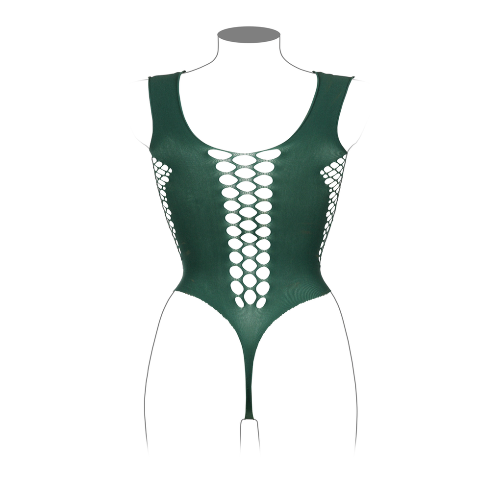 Teddy med en kombination af uigennemsigtig og net. Den har en dyb V-udskæring. Denne teddy har en del stretch og kan bruges fra størrelse XL til 4XL.