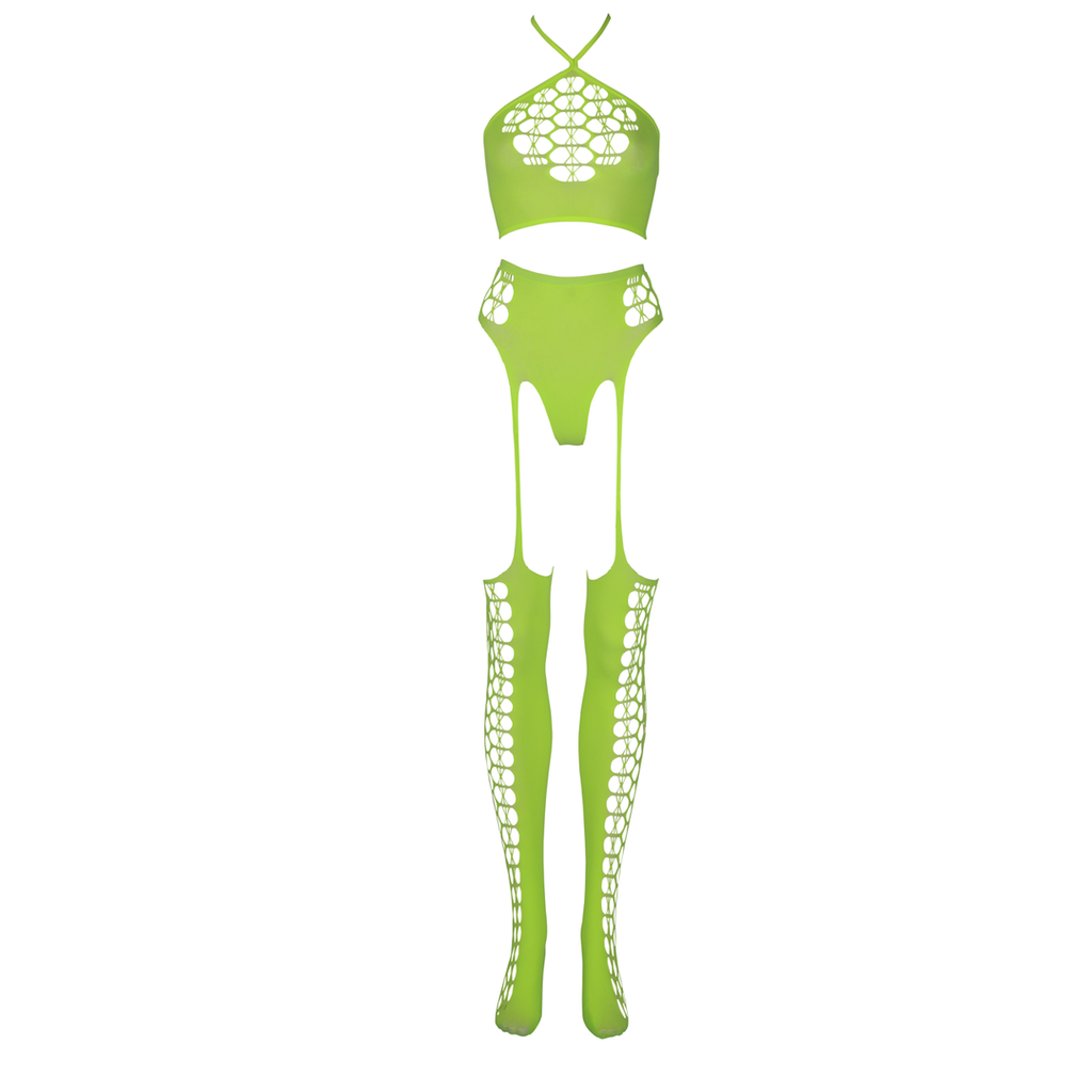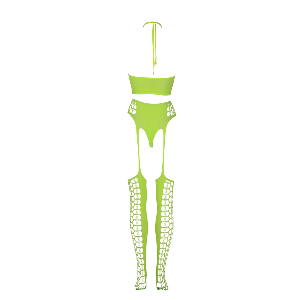 Todelt med Crop Top og strømper - One Size - Neon Green
