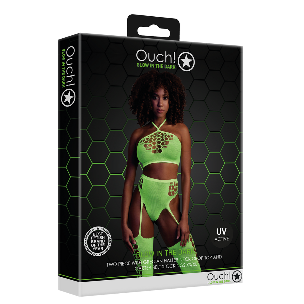 Vores Neon-undertøj er den perfekte tilføjelse til din samling. De er lavet af behagelige, elastiske materialer, der er nemme at passe, og de er designet til at passe perfekt til din krop. Uanset om du bruger dem som festtøj eller lingeri, vil dette iøjnefaldende stykke sørge for, at du skiller dig ud! Slip din indre gudinde løs med dette fantastiske UV-aktiverede lingeri. Den græske halsudskæring giver det en wow-faktor og får dig til at skille dig ud, men hold øje med de fantastiske strømpebåndsstrømper, der følger med. De UV-aktiverede materialer tilføjer et strejf af mystik og tiltrækningskraft. Let at passe på grund af de strækbare materialer, der får dig til at lyse op i natten. Fås i neonpink og neongrøn. Størrelserne går fra XS/XL til XL/XXXXL