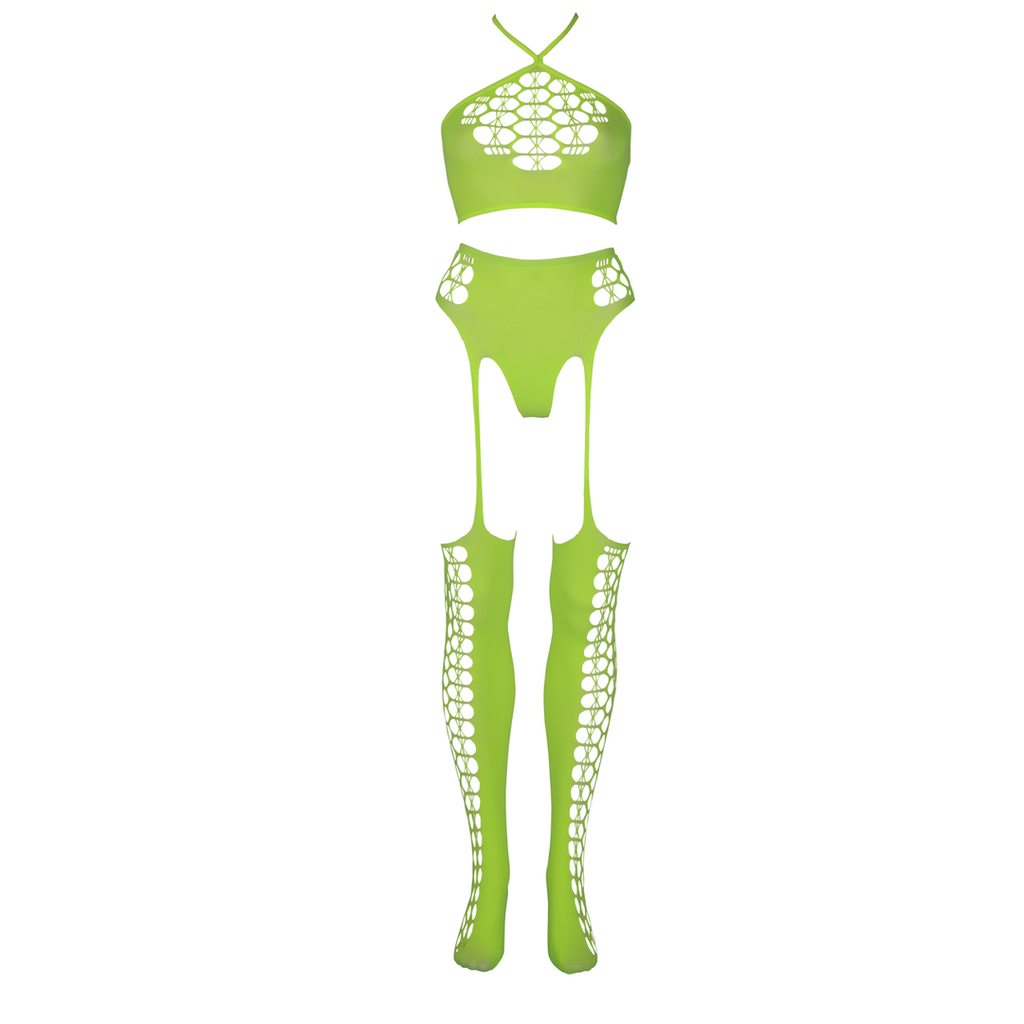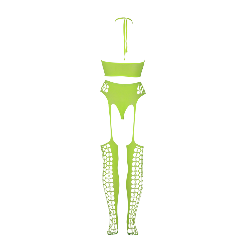 Todelt med crop top og strømper - Plus Size - Neon Green