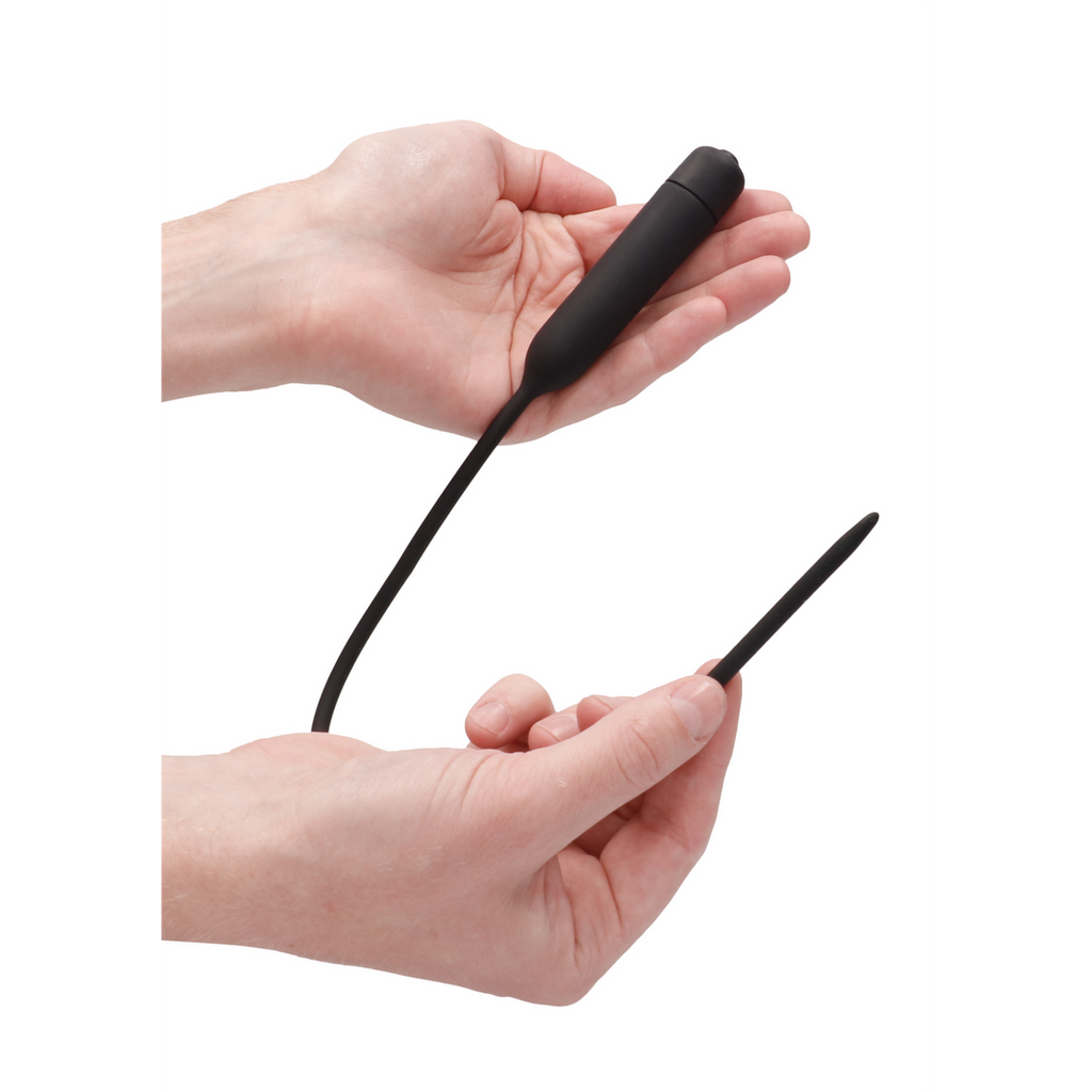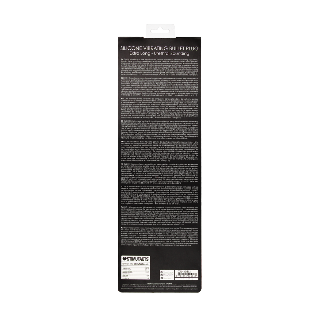 OUCH! Introducerer en ny serie af legetøj til urinrørsudforskere! Hvis urinrørssondering er dit kink, så lad disse glatte sonder levere den ultimative nydelse! Urinrøret er beklædt med superfølsomme nerveender, som kan være ekstremt nydelsesfulde, når de stimuleres. Derudover er dyb urethral leg den eneste måde at massere prostata direkte på. ØV! Har en række urethrale lydprober til begyndere såvel som avancerede brugere! Denne SUPER-LANGE vibrerende model er meget fleksibel, og den afrundede spids gør den nem at føre ind. Sonden har en enkelt vibrationstilstand, der går op til svimlende 12.000 omdrejninger i minuttet, men er ultrastille med mindre end 50 dB. Den bruger et AAA-batteri (medfølger). Legetøjet er lavet af superglat medicinsk silikone uden ftalater og har en samlet længde på 45 cm (17,7), en indføringslængde på 35 cm (13,41) og en diameter på 0,5 cm (0,2).