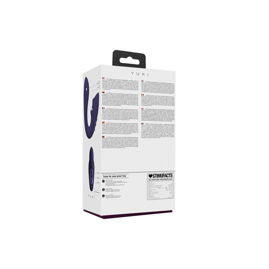 VIVE059 leveres med to uafhængigt styrede motorer, der giver dig den ultimative nydelsesoplevelse. Den første motor handler om sensuel massage. Motoren med bevægelige perler i 3 hastigheder masserer din klitoris og bringer dig til kanten af nydelse og videre. Den anden vibe-motor med 10 hastigheder er designet til at ramme dit G-punktsområde og tage din nydelse til nye højder. YUKI er lavet af 100 % silkeblød silikone af medicinsk kvalitet, er IPX7 vandtæt/neddykbar og genopladelig via USB-magnet. En opladning på 110 minutter giver dig 60 minutters uhæmmet nydelse ved mindre end 60 dB. Alle VIVE-produkter leveres med 1 års garanti.